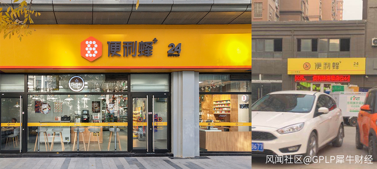 (左為北京一家便利蜂門店,右為山東一家假冒便利蜂)