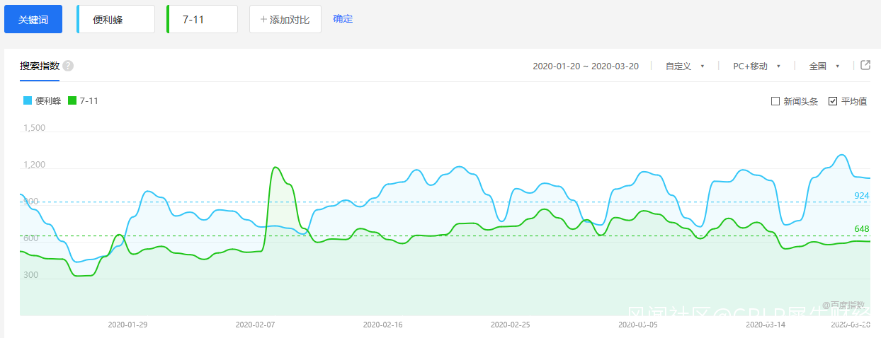 許多援鄂醫療隊生活的城市還沒有便利蜂,但在嚐到新鮮盒飯之後成了便利蜂的粉絲,認為這就是一個標杆品牌。從百度的搜索指數可以看到,對比7-11,疫情期間便利蜂的熱度持續高企,更多人主動關注便利蜂,瞭解便利蜂。