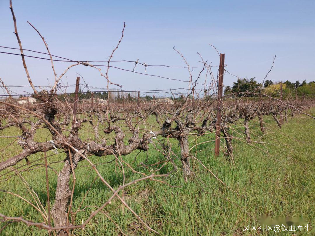 這裏是葡萄酒產區,村子周圍都是葡萄園,葡萄還沒開始抽新葉,看着瘦骨嶙峋的。