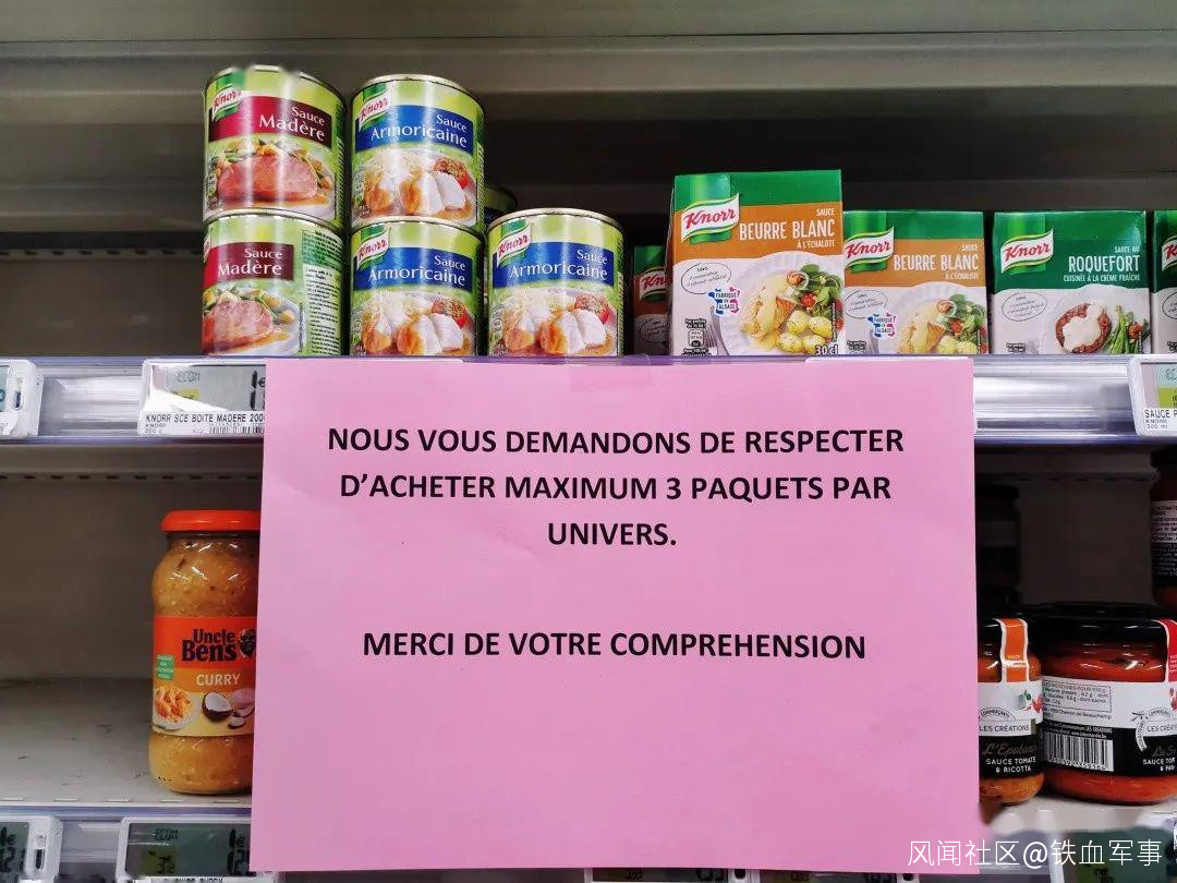 其他食品最多可以買3盒。強調一下,這只是我家門口超市的情況啊,不代表法國其他地方。
