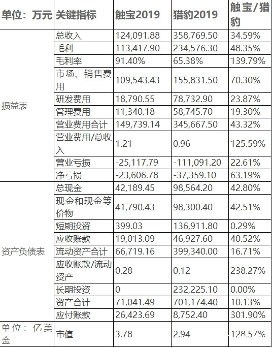 我們將2019年獵豹和觸寶三張表主要關鍵數據財務數據拿來對比發現,比起觸寶,或許獵豹移動被低估的更厲害。