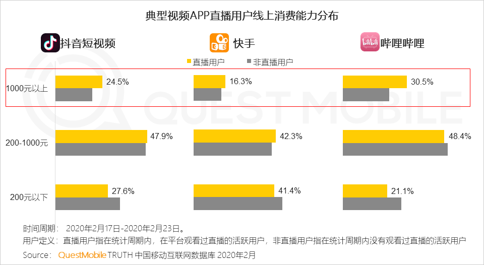 根據QuestMobile發佈的《中國移動直播行業“戰疫”專題報告》顯示,抖音用户在城際分佈、消費能力上均處於行業領先水平。