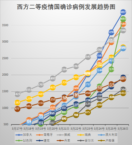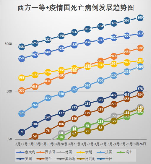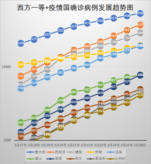 現在把一等疫情國定死10位,二等也是10位。其餘的都列候補。大批的國家數字都在不斷上升,無法以以前的萬級和千級來分類了。總之,西方國家已經有20個,已經包括了所有的西方大國和中國。足以表達趨勢了。