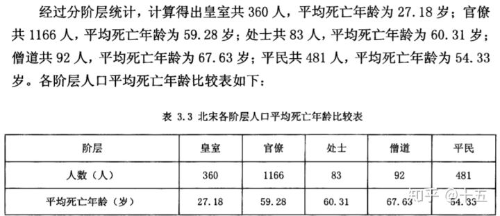 此外十五還找了一些古代人平均死亡年齡的數據統計,如北宋平民階層的死亡年齡(陸巖 <北宋人口死亡年齡研究>):