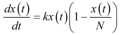 假如感染者平均分佈在人羣當中(實際上不可能),由於已經感染的人不會被感染,那麼極短時間dt內x(t)個感染者將帶來比前面指數模型更少的人,依據比例就是