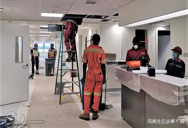 “在疫情期間實施搶工,挑戰比以往更大。但為了特多人民的生命健康安全,我們會像國內搶建火神山醫院一樣,擔起我們的責任。”項目負責人李東生表示,項目部既要迅速響應業主需求,還要控制施工人員密度,防止出現交叉感染。項目部緊急召開會議,暫停其他區域施工,協調多方資源,將其他區域牀位設備轉移到指定區域。經過7天的緊張工作,當地時間3月24日,所有病房牀位和設備已移交給業主。