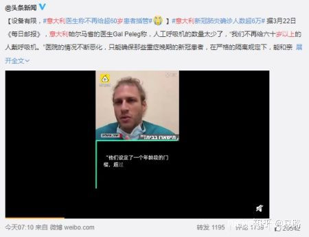 圖片來源:微博@中國新聞週刊意大利是歐洲老齡化程度最高的國家,在全世界排名第二,僅次於日本。據2018年數據顯示,意大利65歲以上老年人口占比約22.6%。於是,病毒餵養惡念,謠言開始滋生,在互聯網上,逐漸出現一股算計要放棄老人的風向。比如説前幾天,一些類似“意大利60歲以上老人將被放棄治療”新聞的傳言。