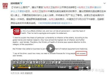 圖片來源:觀察者網讓人無語的是,支持這種邪惡觀點的不只是那些野生玩家。不久前,烏克蘭衞生部長葉緬茨在接受採訪時聲稱,不要把錢花在給65歲以上的人治病,因為他們都是屍體。
