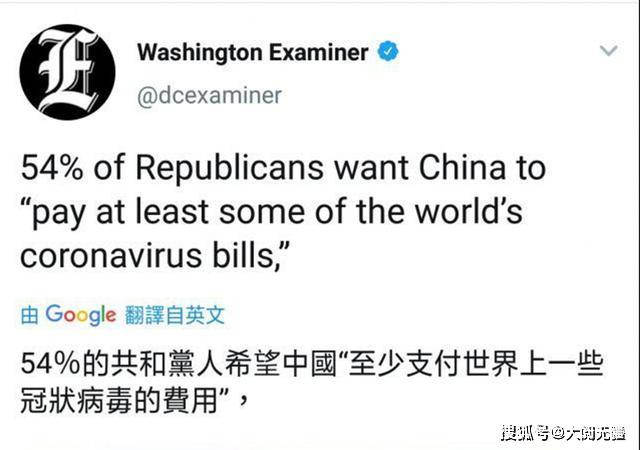 3月17日美國《華盛頓觀察家》新聞週刊網站上,赫然出現了一篇文章,顯示有54%的共和黨議員希望由中國出錢來為全球抗疫消費買單,或至少支付其中一部分款項。