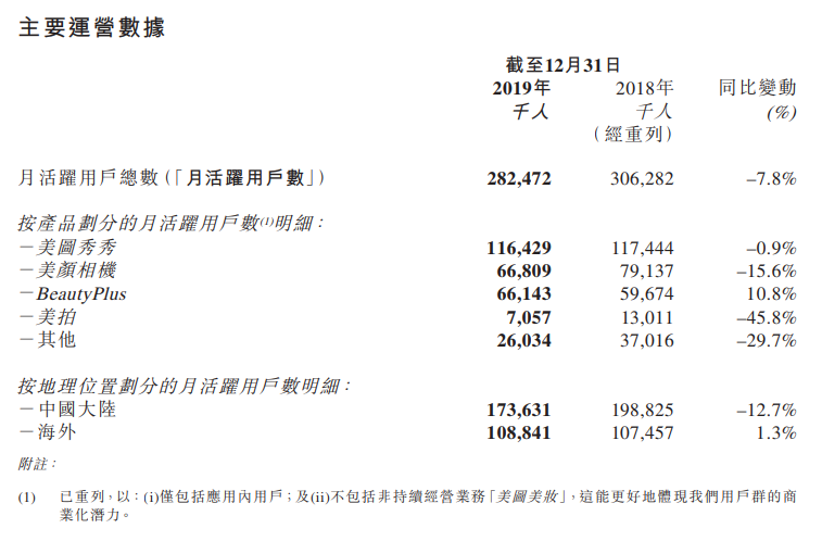 在主營的App矩陣中,唯一增長的是美顏相機的海外版BeautyPlus,月活為6614萬,同比增長10.8%。