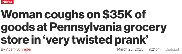 據《紐約郵報》3月25日報道,賓州一名婦女故意對着商店內的各處咳嗽,造成大約35,000美元的商品被損毀。