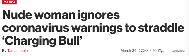 紐約成疫情“震中”:裸女華爾街騎銅牛,婦女故意咳嗽造成3.5萬美元損失_風聞