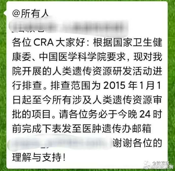 幾乎與此同時,另一條消息熱傳:各大醫院正在排查人類遺傳資源研發項目。