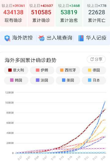 1. 3月28日早海外累計確診51萬,增加7.1萬(1.2萬,1.6萬,2.2萬,2.4萬,3.1萬,3.1萬,2.9萬,4萬,4.3萬,4.6萬,5.9萬),又多增了。