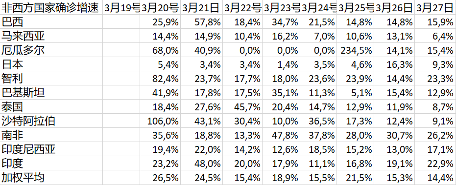 增長最快的是南非。三天翻番,就是2000級。其次是智利,要四天才能翻番,然後是3000級。再然後是印度,大概要五六天後才能到2000級。但莫迪已經宣佈封國21天,估計還有很大希望不至於爆炸。