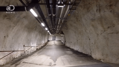 進入種子庫後,是一條寬闊的混凝土隧道,這裏燈火通明,直通山體內部: