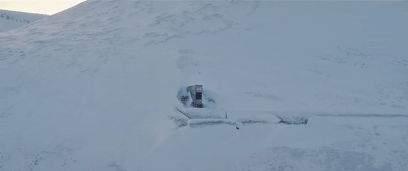 它藏身於斯瓦爾巴羣島,位於北極與挪威之間,是人類商務航班所能到達最北的地方,除了一座像是從地底深處刺出的傾斜建築,四周只有茫茫冰雪: