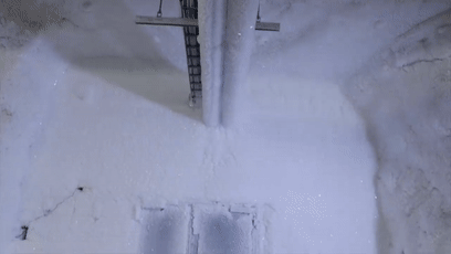 冰雪開始逐漸覆蓋牆壁、管道,彷彿在走入另一個次元: