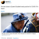 【英國女王一名親密侍從新冠病毒檢測陽性】據俄羅斯衞星通訊社剛剛消息,英國女王的一名侍從新冠病毒檢測呈陽性。英國王室以及英國官方尚未證實。俄衞星社當天援引英國《太陽報》消息説,這名與女王伊麗莎白二世有過密切接觸的王室侍從被檢測感染新冠病毒,這讓 展開全文