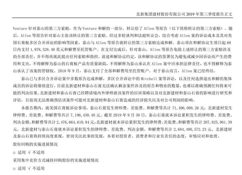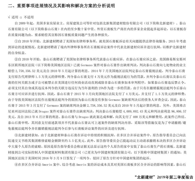 一直拖而未決,但美國法律費直線上升;最後,2019年,“北新建材”打掉牙齒和血吞,以付出人民幣19.36億元的巨大代價,進行“訴訟案和解”了結。從中不難看出,與當年(2006年)出售“石膏板”所得相比,賠了一個精光。真應了那句“你想着別人的利息,別人卻想着你的本金”。