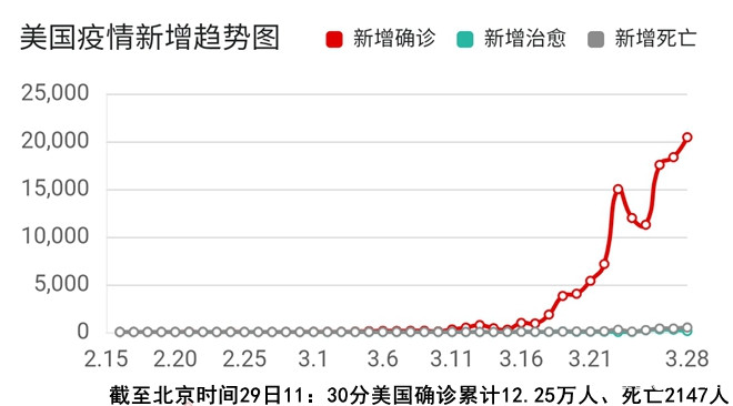 截至北京時間29日11:30分,美國確診累計12.25萬人,死亡2147人。毋庸置疑地,美國普通民眾已經陷入“水深火熱”之中,並且,由於美國現任政府出於選票的需要、而一再地壓制和隱瞞疫情,致使疫情出現“井噴”現象,從而使美國民眾至今仍看不到“一絲”光明。
