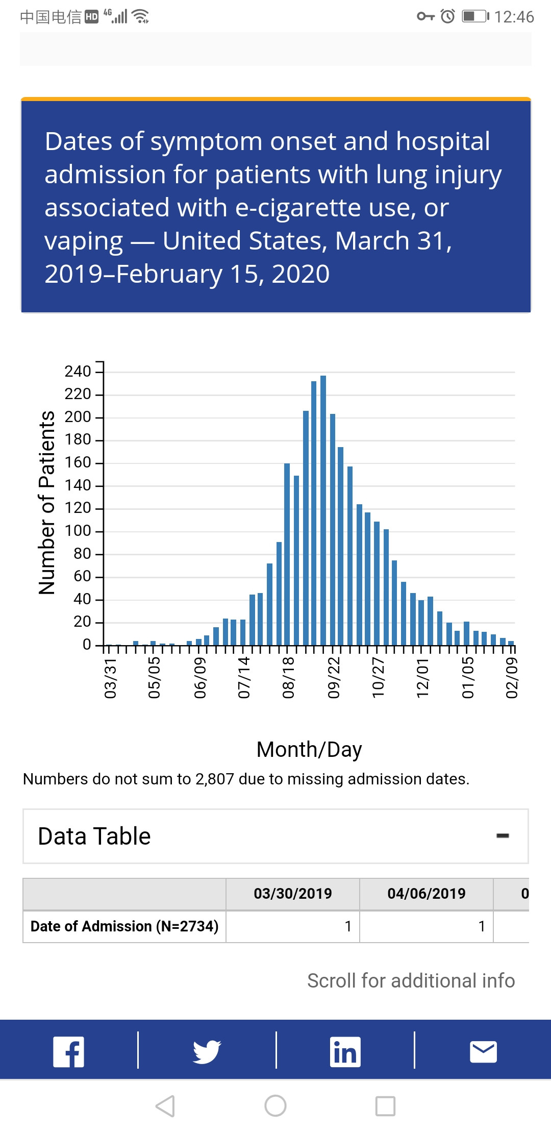 我不知道電子煙肺炎是不是新冠肺炎,**但電子煙肺炎的發病規律和電子煙的銷售量增長並不存在對應的線性關係,**如果電子煙肺炎就是所認為的THC導致的,那麼它的發病率應該隨着銷量增長而增長,而不是集中在去年8、9月集中爆發。