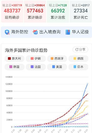 1. 3月29日早海外累計確診57.7萬,增加6.7萬(1.3萬,1.2萬,1.6萬,2.2萬,2.4萬,3.1萬,3.1萬,2.9萬,4萬,4.3萬,4.6萬,5.9萬,7.1萬)。