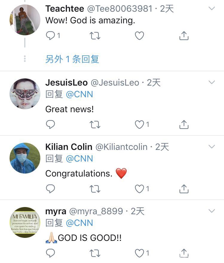 CNN消息發出後,得到很多網友點贊,不少網友在社交媒體推特上給老人送上了祝福。