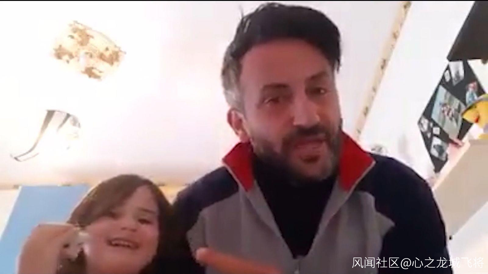 ▲視頻拍下一名絕望的男子朝警察大喊。圖據天空電視台 而另一段在意大利廣泛流傳的視頻中,一名父親帶着年幼的女兒説道:“我們已經在家裏待了15-20天了,已經到了極限。”這位父親指着正在吃麪包的女兒説:“像我女兒一樣,其他的很多孩子在未來幾天連這點麪包都吃不到了。”