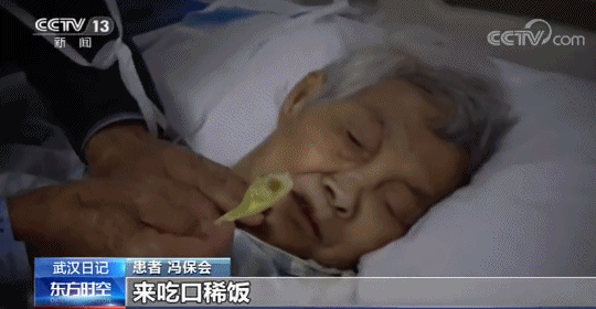 一開始,護士給奶奶餵飯,可她不肯吃。