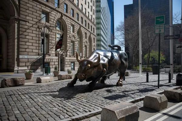 ▲3月26日,美國紐約曼哈頓的華爾街銅牛旁空無一人。(新華社)