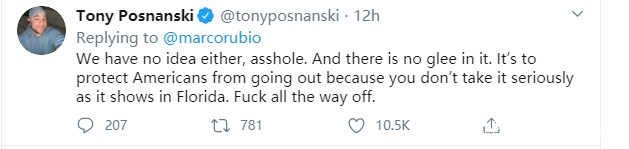 不過,不少美國網民也看不下去這種“推鍋”給中國的言論。在盧比奧的帖文下,一個獲得1萬多條點讚的評論就寫道:我們也不知道自己的數字有多少,傻X。而且美國媒體也不是“幸災樂禍”,而是真心地在呼籲要保護好美國人——因為你們根本就沒有認真對待疫情。快滾粗吧。