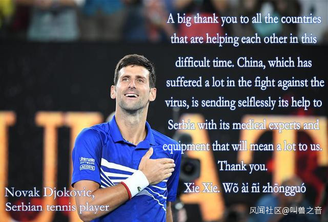塞爾維亞的政府,民眾包括網球明星德約科維奇,向中國和中國人民表達了深深的感謝。
