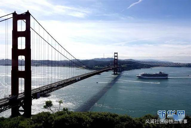 ▲ 圖為3月9日,在美國舊金山,“至尊公主”號郵輪即將駛過金門大橋。