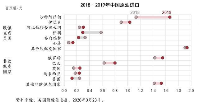 沙特阿拉伯是向中國出口原油最多的國家。2019年,沙特阿拉伯向中國出口的原油,每天也不過170萬桶。