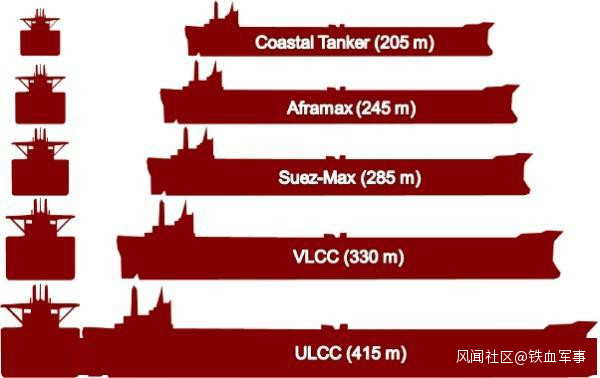 ▲ (VLCC與其他種類油輪的“體型”對比)