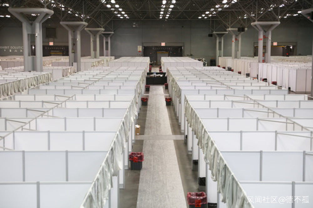 3月30日,位於紐約市賈維茨會展中心的臨時醫院也開始投入使用。原計劃的1000張病牀,已增至2910張,成為眼下紐約市病牀最多的醫院。