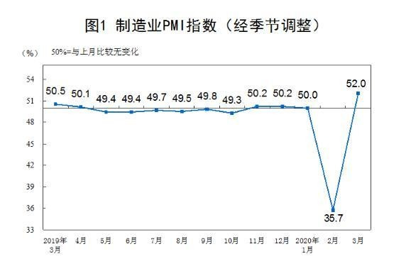 製造業PMI指數。來自國家統計局為何出現大幅回升? 數據顯示,中國採購經理指數在上月大幅下降基數上環比回升,其中製造業PMI為52.0%,比上月回升16.3個百分點。 非製造業商務活動指數為52.3%,比上月回升22.7個百分點;綜合PMI產出指數為53.0%,比上月回升24.1個百分點。 為什麼PMI比2月份有如此大幅度的回升?據瞭解,採購經理指數是環比指數,反映的是本月比上月發生的經濟變化情況,變化幅度與上月基數有很大關係。 國家統計局服務業調查中心負責人稱,今年以來,新冠肺炎疫情對中國經濟形成嚴重衝擊,尤其是 2月份採購經理指數跌至歷史最低點,甚至低於2008年國際金融危機期間,經濟活動短期內大幅收縮。3月份,疫情防控形勢持續向好,企業復工復產明顯加快。 截至3月25日,全國採購經理調查企業中,大中型企業復工率為96.6%,較2月25日調查結果上升17.7個百分點,生產生活秩序穩步恢復。 上述負責人稱,這些數據表明3月份企業生產經營狀況與2月份相比發生了明顯的積極變化。