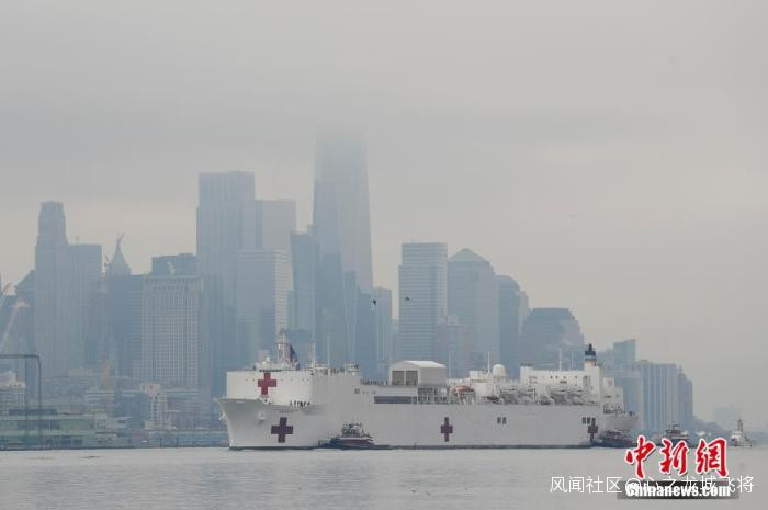 當地時間3月30日,美軍醫療艦“安慰號”航行抵達紐約曼哈頓。當日,“安慰號”抵達位於紐約曼哈頓的90號碼頭。該船有1000張醫療牀位,配備50個急救室,12個手術室,將在紐約接收非新冠肺炎患者。中新社記者 廖攀 攝