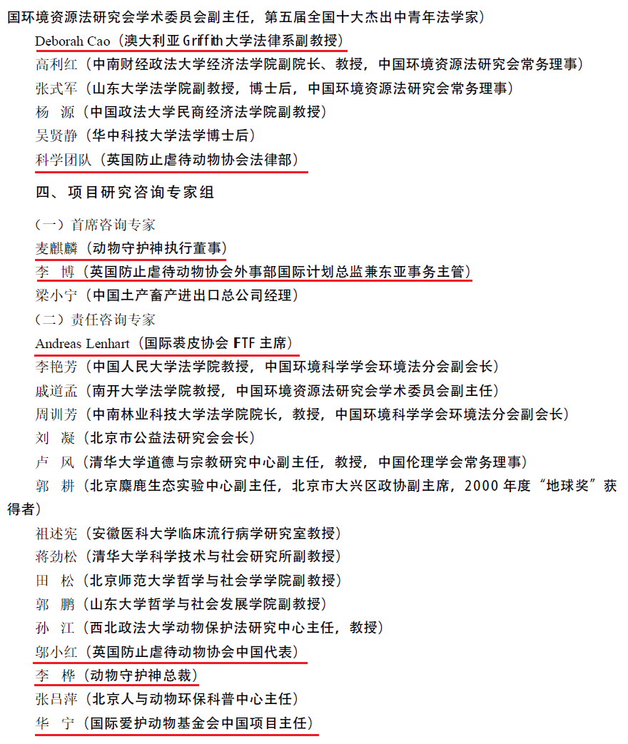 《建議稿》的名單中,有社科院和一些高校的“專家”,幾個“動保組織”,還有一些“國際友人”: