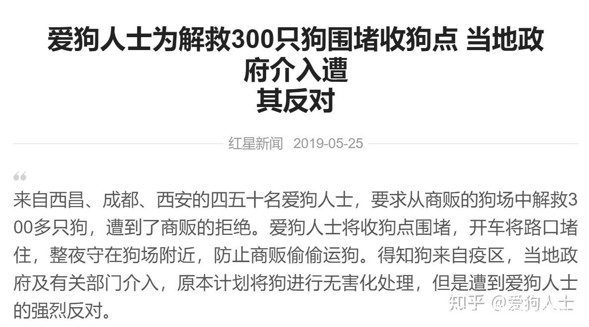 最諷刺的是:2019年5月,愛狗人士打着“食品安全”的旗號,圍堵四川一家狗場。政府介入後,得知狗來自“包蟲病”疫區,要將狗全部無害化處理,卻遭到了愛狗人士的強烈反對。