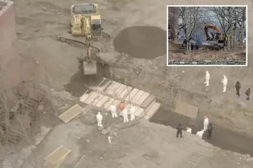 據美媒報道,一段來自“哈特島項目”(HartIslandProject)的無人機視頻顯示,4月2日,在新冠疫情期間,囚犯們在集體掩埋屍體。“哈特島項目”是一個引導公眾參觀紐約哈特島公共墓地的宣傳組織。