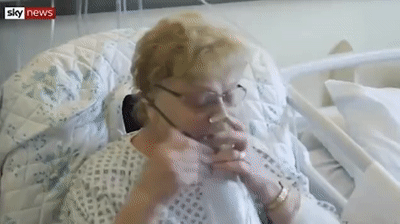 帕梅拉·米爾斯(Pamela Mills)因新冠病毒感染已在該院住院兩週,目前需要通過氧氣面罩來吸氧。米爾斯説,最大的問題就是呼吸困難,比如起牀去洗手間,再回到牀上時,總會呼吸艱難上一段時間,才能稍微放鬆下來。米爾斯感覺有那麼幾天如在地獄,只想上牀睡覺。