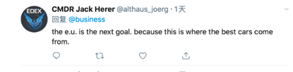 他提醒,中國之後,“歐盟是下一個目標,因為這裏是最好的汽車的生產地。”↓