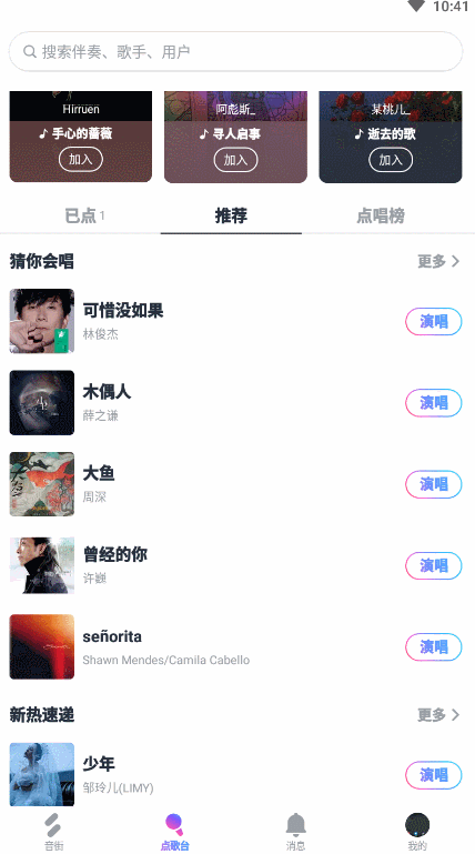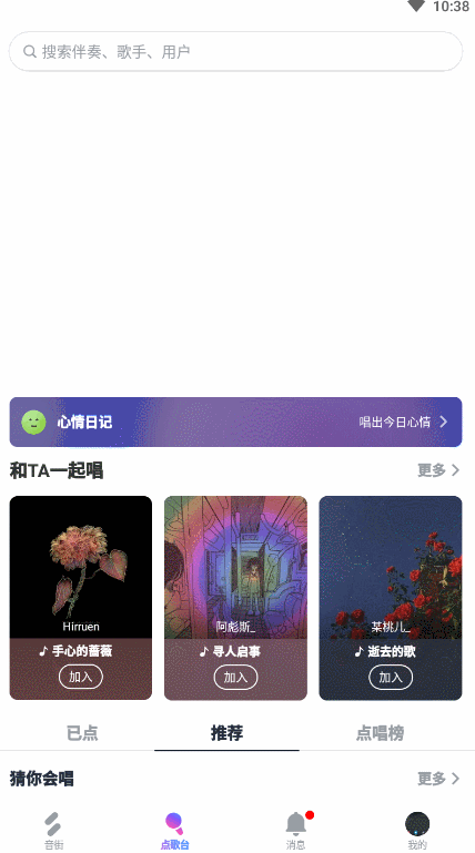 而從點歌界面的推薦歌單看,歌單基本是雲音樂推薦歌單的移植版。鑑於網易雲音樂在個性化推薦方面的良好表現,這一版塊將可能在後續更新中被進一步強化。至於其餘在前期宣傳中被音街團隊重點介紹的功能,如歌詞動態效果,多維度K歌打分等在實際使用中有一定的體驗提升,屬於音街團隊在繼承雲音樂優勢以外的創新。