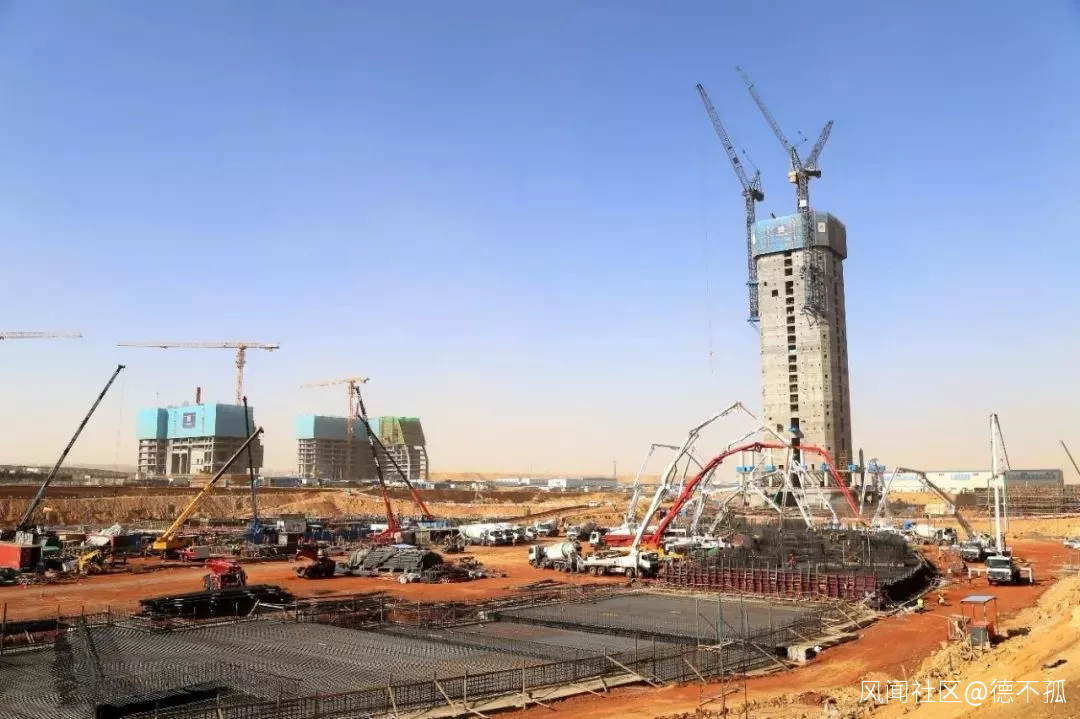 開羅時間2月5日晚23時,埃及新首都CBD項目中心廣場首段7500立方米的大型筏板開盤澆築。圖源:中國建築