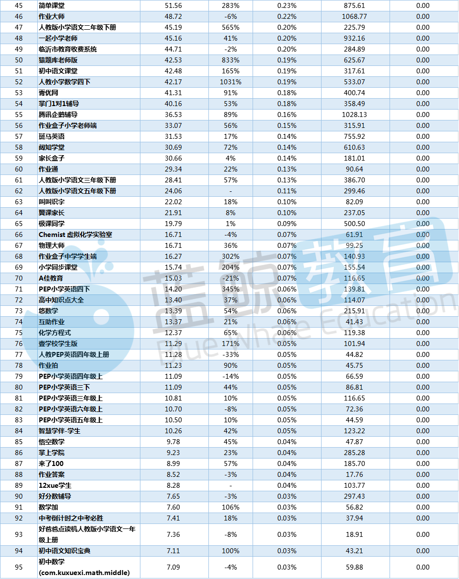 用户規模翻1.5倍,與課本配套APP 6家進入增長幅度TOP 10。