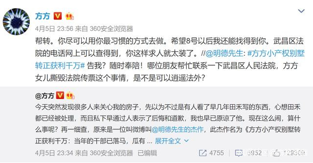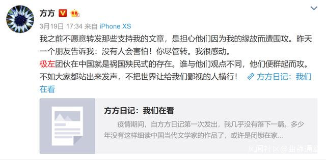 很多網友看了她日記,批評其對法律法規曲解,並篡改事實的問題。很多網友對方方深挖,把家裏人也扯出來,最後也看到方方進行了反擊。中國作家的文字鬥爭,確實值得耐人尋味,不斷的辯論與批評,也有看熱圍觀人羣,也有作家之間相互的誹謗等等。