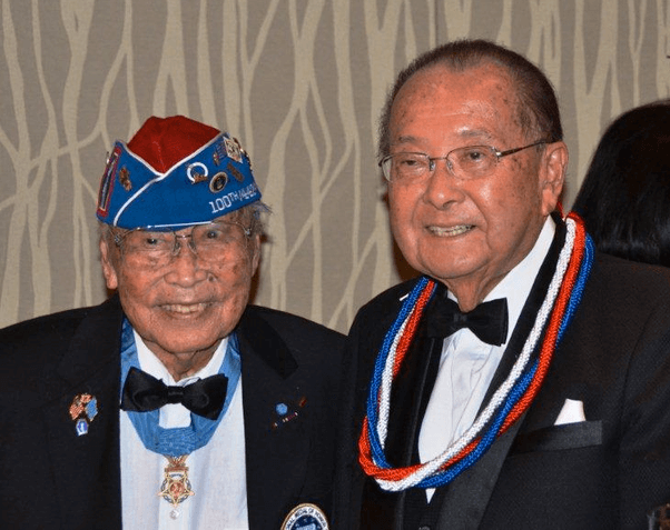 美國參議員井上彥(右)在二戰期間擔任第二中尉,他在意大利服役,他被愛國主義者質疑是日本血統。隨後,井上中尉向敵軍陣地挺進,他在被狙擊手射中後拒絕撤離,直到一切抵抗平息,33名死傷敵軍士兵躺在他腳下。他的傷太重了,他不得不截肢,差點流血而死。儘管如此,由於姓氏的種族關係,他最初還是被跳過了榮譽勳章。