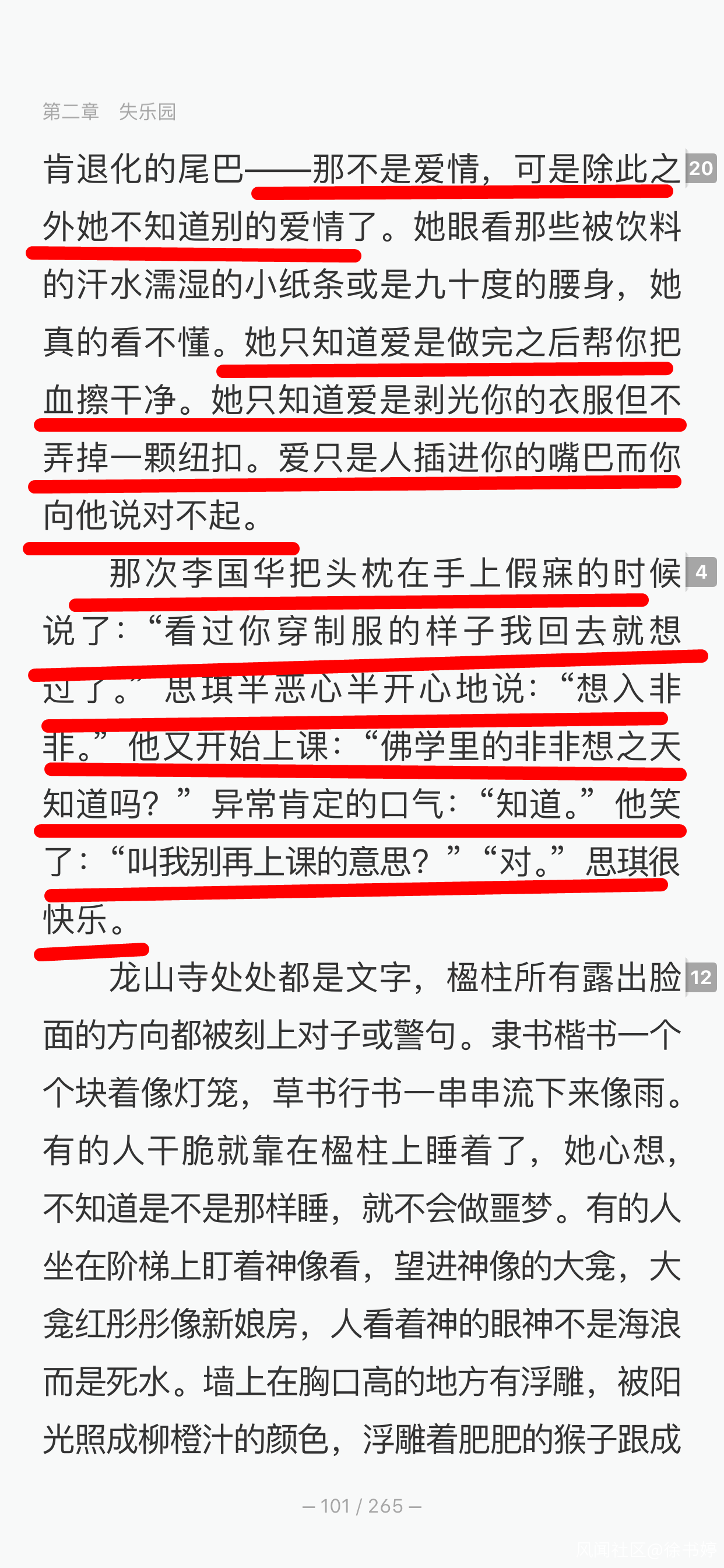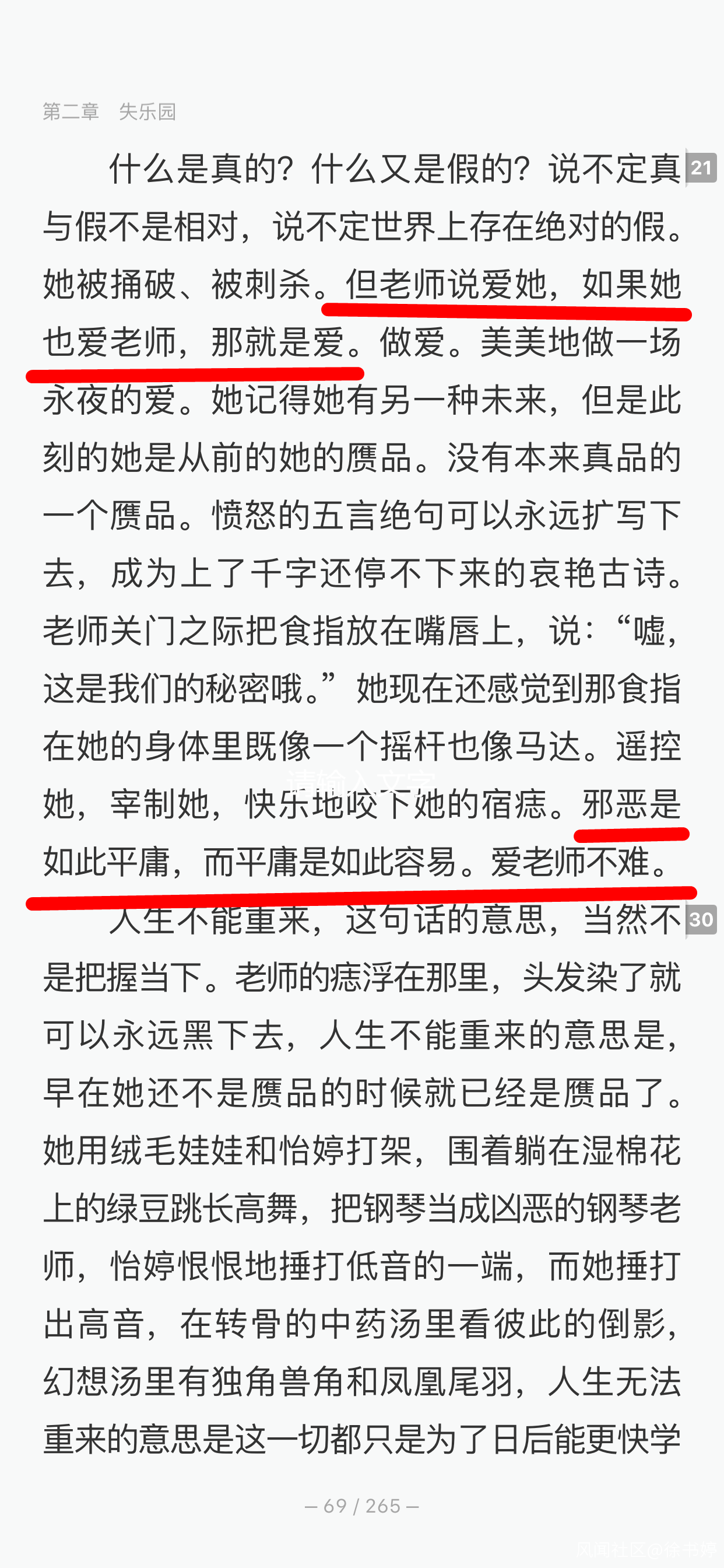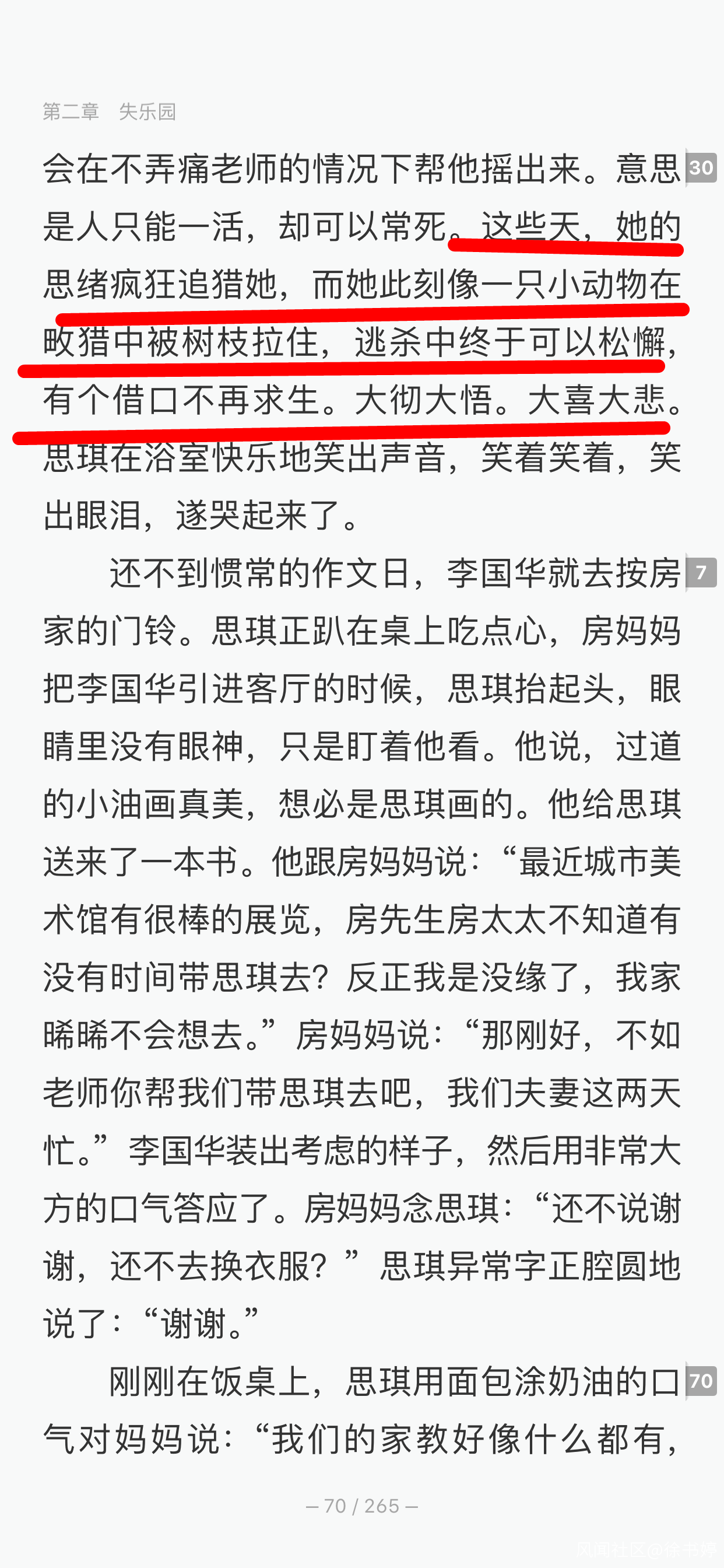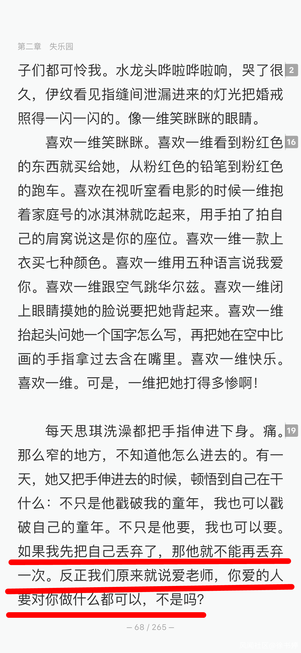 以下是從《房思琪的失戀樂園》一書中截取的內容,作者林奕含根據自己被補習班老師性侵的經歷寫就,身為作家的“天賦”讓她能清楚地描述性暴力中幽微的心理狀態。她也知道,這些慘痛的經歷會給讀者帶來“審美上的快感”,不知道財新的苑記者有沒有讀過。
